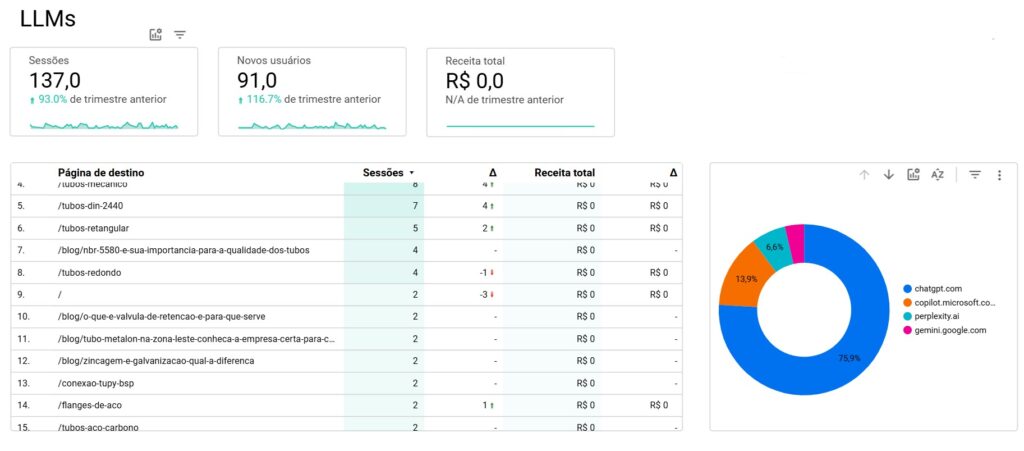 Outro diferencial é a capacidade de mensurar resultados que vão além do Google Analytics tradicional. A Bloomin implementa monitoramento de acessos oriundos de ferramentas como ChatGPT, Bing Chat, Google AI Overviews e Perplexity, permitindo entender de forma concreta como o conteúdo da marca está sendo referenciado pelas IAs.